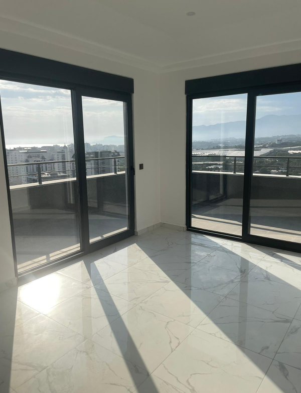 Erleben Sie den Inbegriff von Luxusleben in diesem neuen 2+1-Maisonette-Penthouse in Mahmutlar, Alanya. Dieses Eckapartment im 11. und 12. Stock bietet großzügige 101 m² Wohnfläche und einen atemberaubenden Blick auf das Meer, die Burg von Alanya, die Berge und die Stadt. Nur 800 Meter vom Strand entfernt bietet dieses Penthouse eine einzigartige Mischung aus Komfort und High-End-Ausstattung.